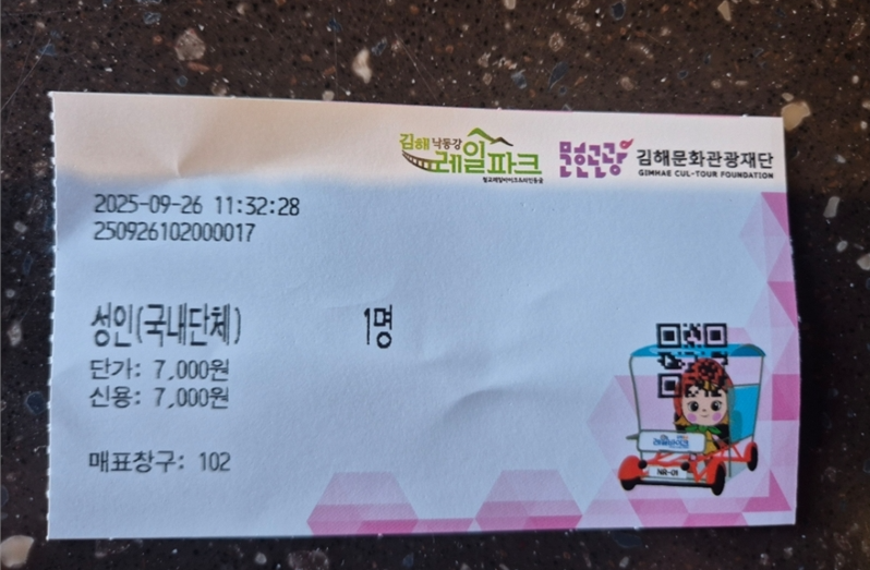 입장권. 성인 한 명에 7천 원이다. 아이 등은 할인된다.