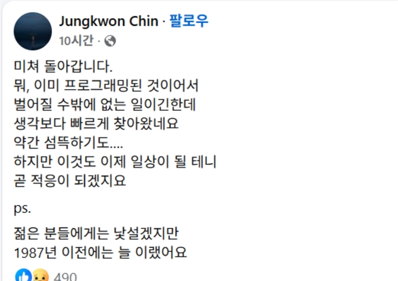 이어 "이것도 이제 일상이 될 테니 곧 적응될 것”이라고 했다.