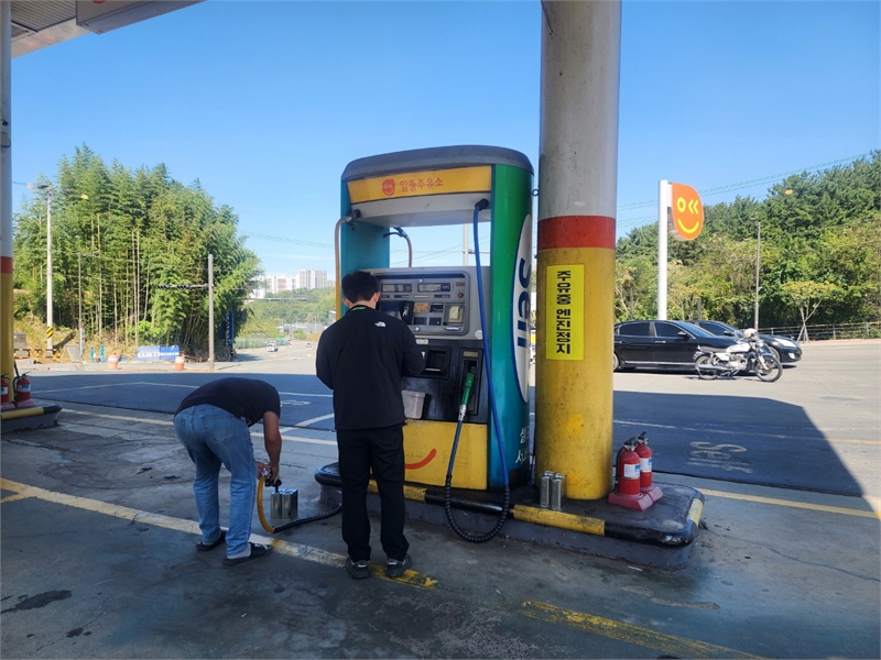 한국석유관리원 부산울산경남본부 관계자가 석유 품질을 점검하고 있다.