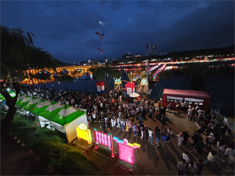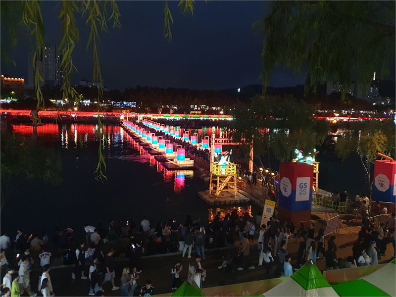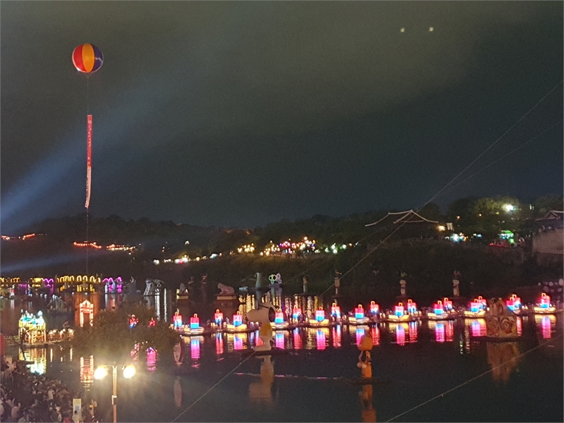 이날 유등축제 개막식은 오후 6시 시작된 고유제를 시작으로 점등식(오후 7시 30분), 불꽃 및 드론쇼(8시)가 펼쳐졌습니다.