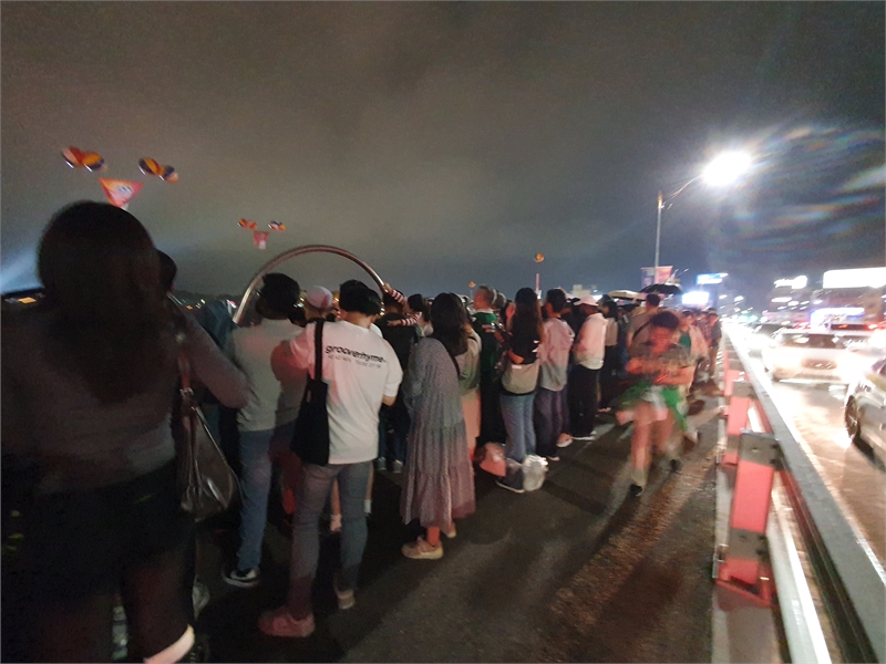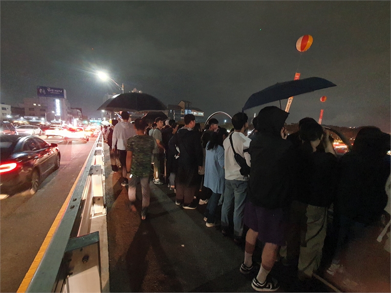 양쪽 남강 둔치 외 진주교에도 불꽃쇼를 구경하려는 인파로 가득하다.