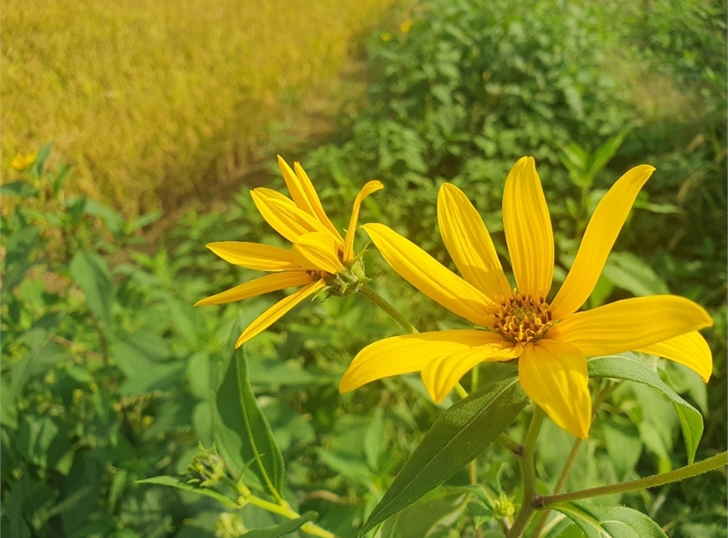 누렇게 익은 벼논 옆 길섶에서 잡초처럼 우거져 있는 돼지감자