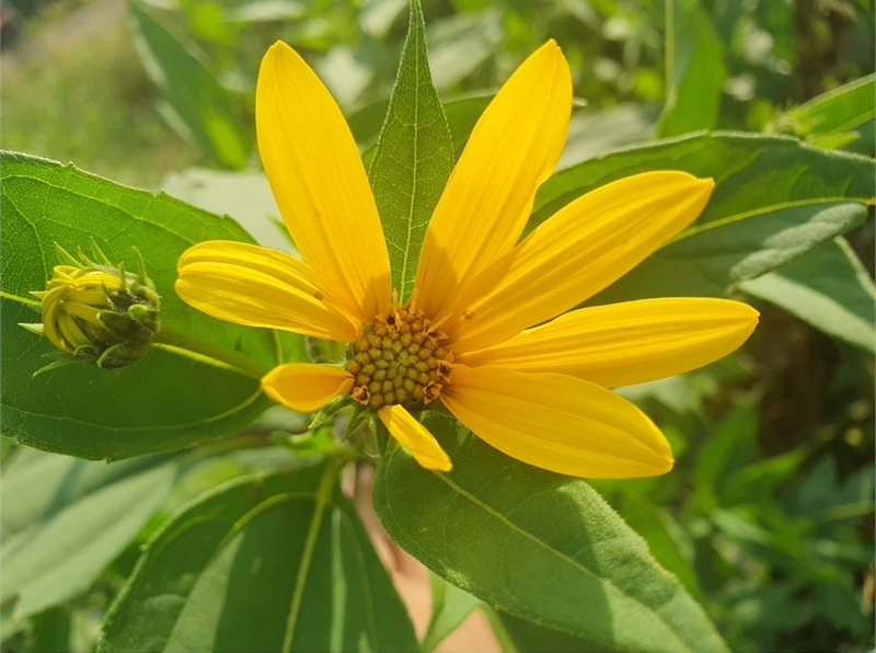 돼지감자꽃이 해바라기처럼 크거나 국화처럼 꽃이 모여 피지 않아 화려하지 않기 때문에 많은 이가 눈여겨 보지 않습니다.