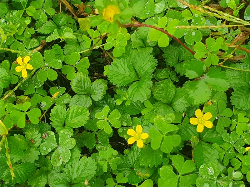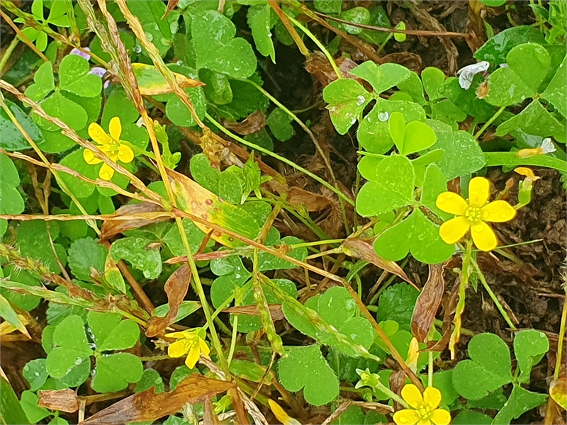 괭이밥은 토끼풀(클로버)과 비슷하게 생겨 혼동됩니다.