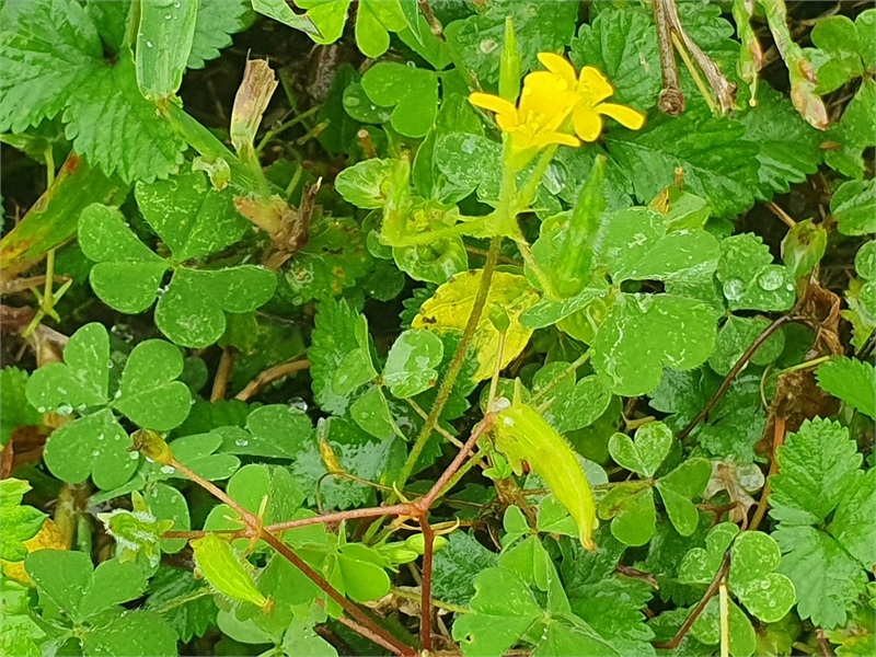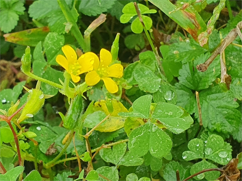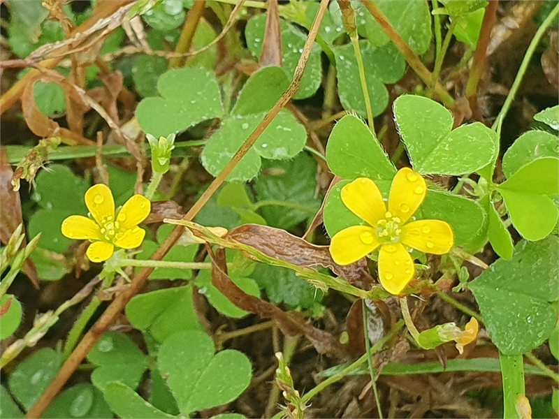 먼저 독자께 양해를 구합니다. 괭이밥꽃은 엄연히 가을꽃으로 한정하면 안 됩니다. 이꽃은 늦봄부터 피기 시작해 여름 내내 피고 가을에도 이어 핍니다. 최근에 발견해 사진을 찍어 편의상 가을꽃으로 소개합니다.
