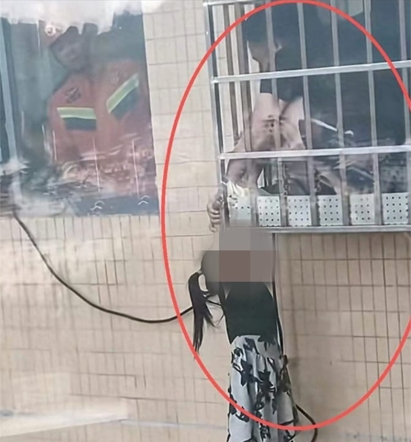 중국 중부 후난성의 한 아파트 14층에서 추락한 한 여자아이가 이웃의 도움으로 매달려 있는 모습. 홍콩 SCMP