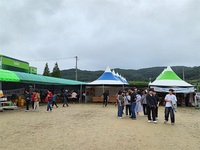 농특산물장터. 부스들에는 하동산 각종 농특산물을 판다.