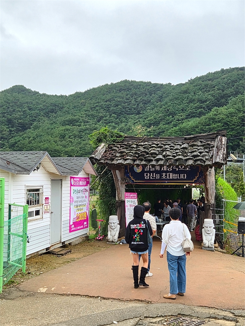 축제장 메인 장소. 입구에 축제 알림판과 무대가 설치돼 있다.