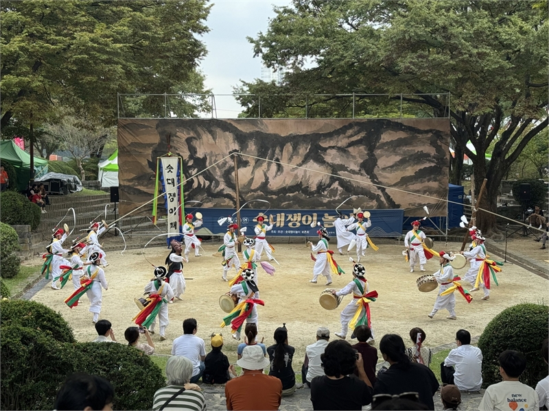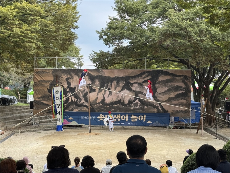 특히 솟대쟁이놀이 특유의 아슬아슬한 기예와 출연진의 재치 있는 입담, 생동감 넘치는 퍼포먼스가 관람객들의 큰 호응을 얻었으며, 진주의 전통예술이 세대와 국경을 넘어 공감과 즐거움을 전하는 무대로 자리매김했다.