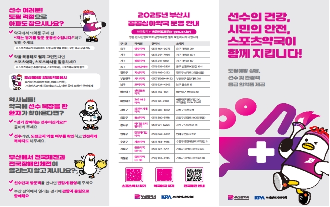 부산시약사회는 스포츠 전문약사와 약학대학 재학생 보조 인력을 지원하고, 약품 목록 작성과 도핑주의 성분 표시, 홍보자료 제작 자문 등 실무를 맡는다. 부산시는 스포츠약국 운영 총괄과 지원, 홍보 등을 담당해 민관 협력 모델을 완성한다.