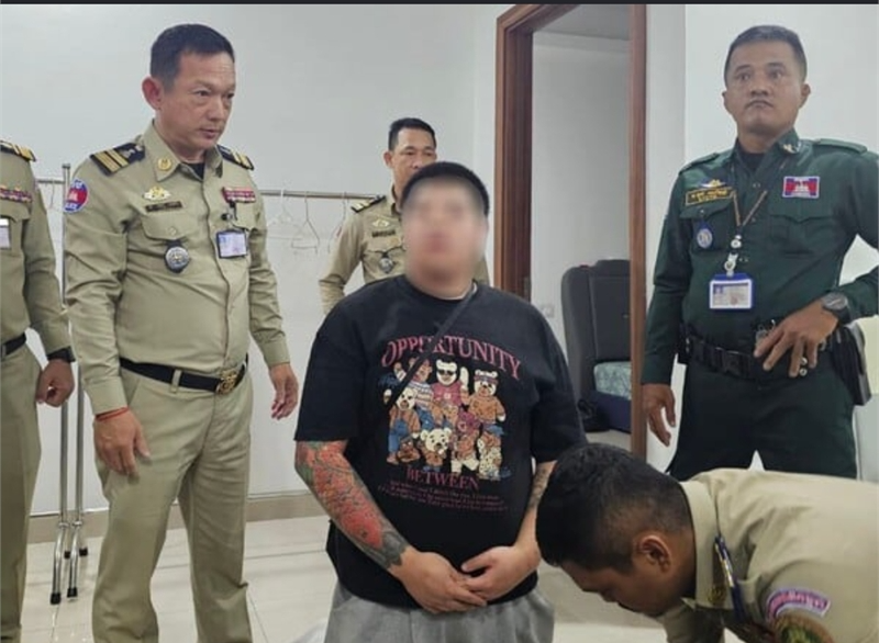 실제 조선일보가 단독 입수한 당시 현장 사진엔 정 씨가 캄보디아 경찰 단속에서 체포돼 무릎을 꿇고 있었다. 양팔에는 문신이 가득 새겨져 있었다.