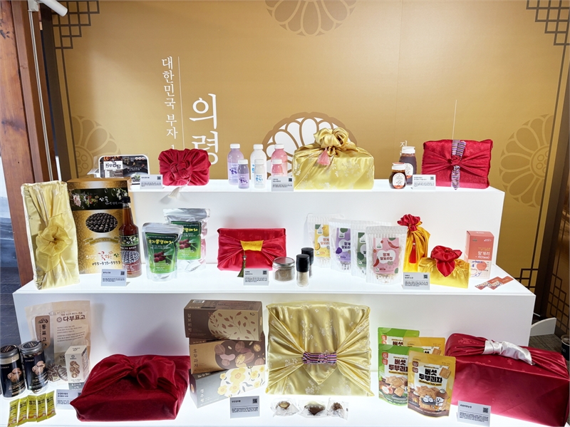 의령군이 지난 17~19일 서울 종로구 북촌에서 개최한 중소벤처기업부의 '시군구 연고산업 육성사업 성과 공유 팝업스토어'에 전시된 의령군 농특산물들