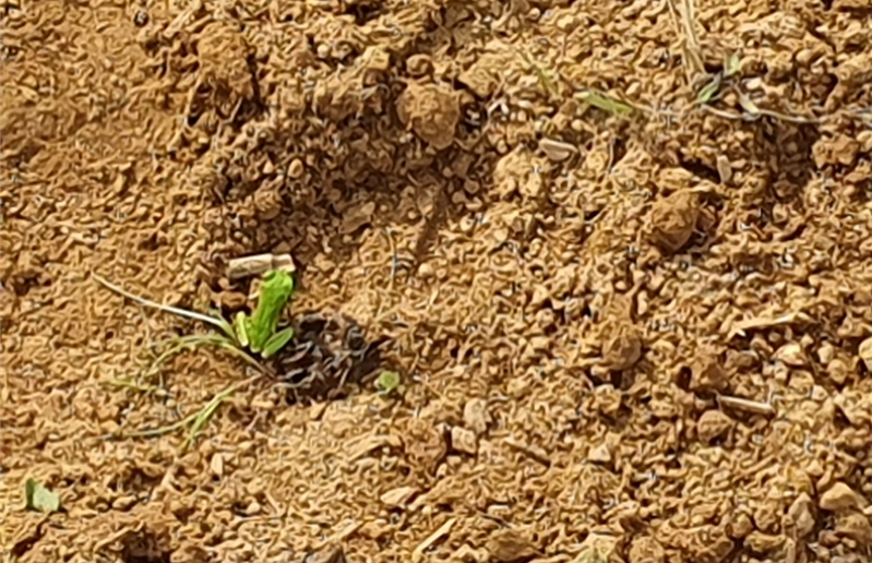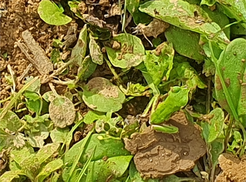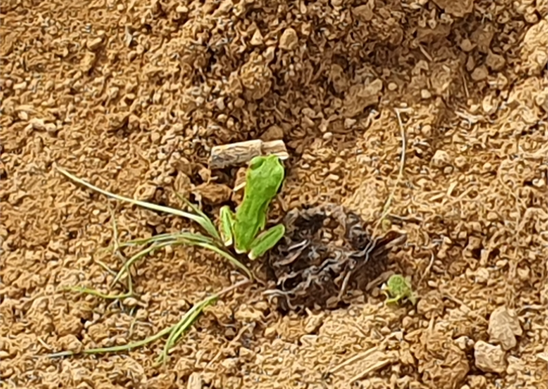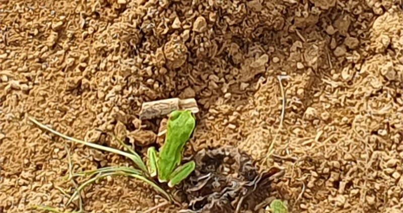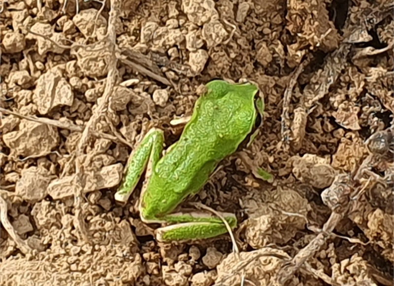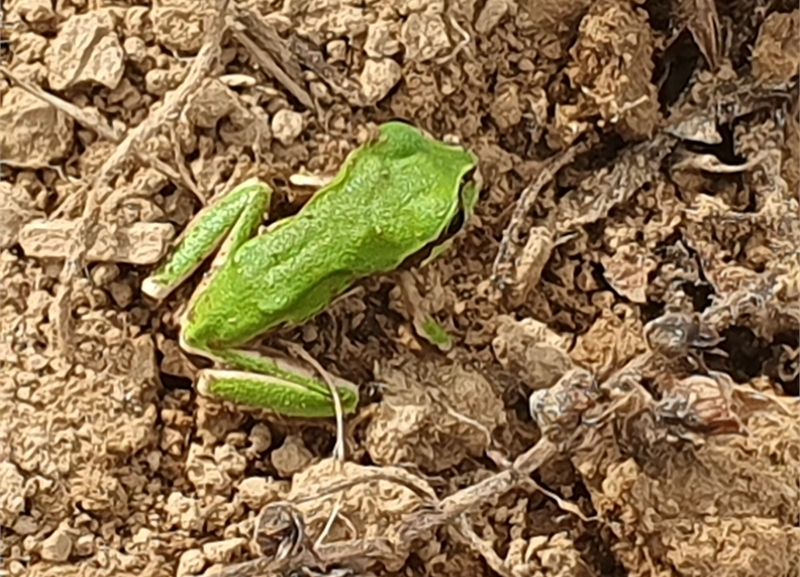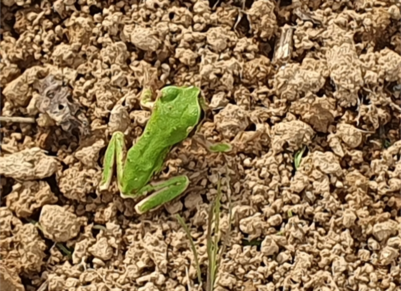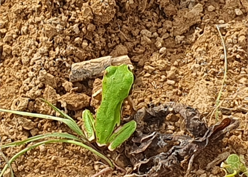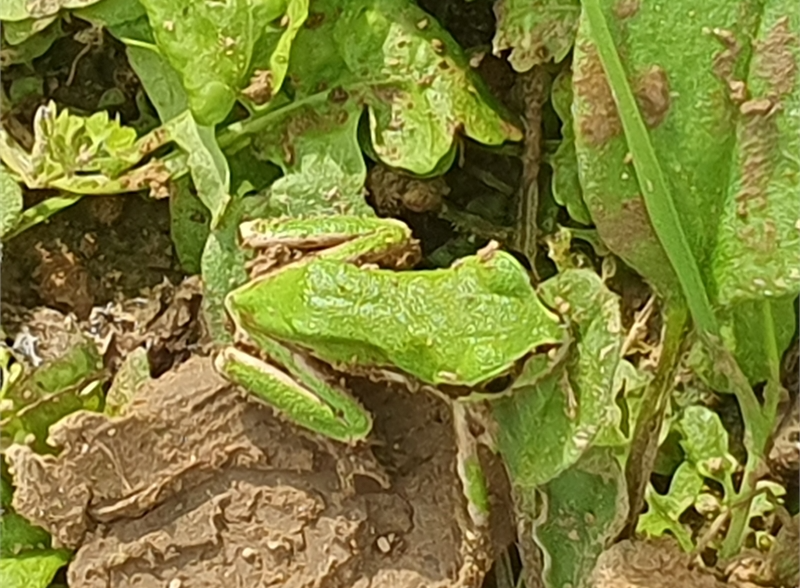 지난 1일 들깨 수확 밭에서 발견한 청개구리 모습인데, 가을이 깊어가는데도 아직 피부가 초록입니다.