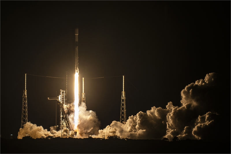 우리군 정찰위성 5호기가 2일 오후 2시(한국 시각) 미국 플로리다주 커네버럴 우주군 기지에서 스페이스 X사의 '팰컨 9' 발사체를 사용해 발사되고 있다.