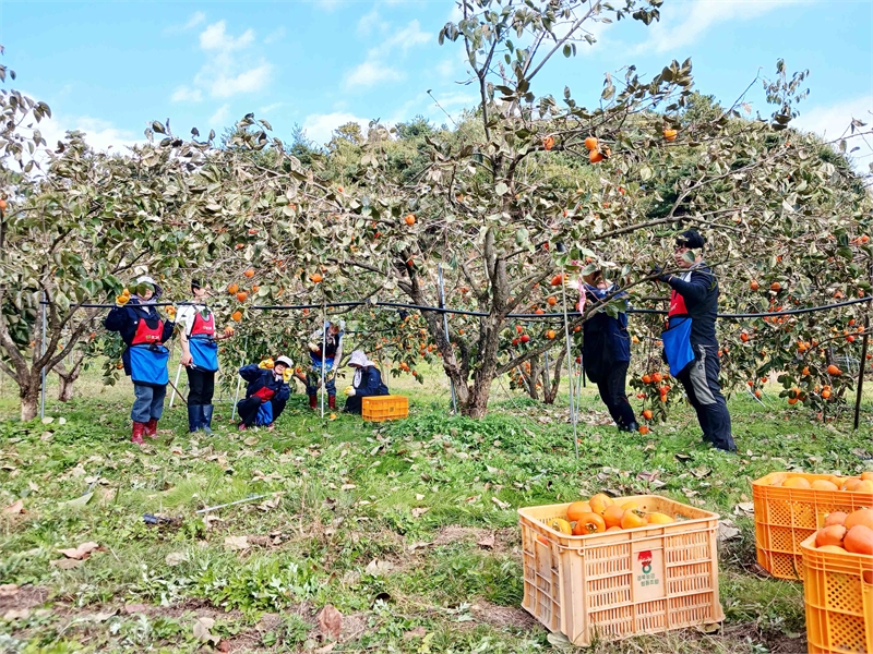 함양군 지곡면사무소 직원들이 지난 4일 지곡면 덕암리 대봉감 생산 농가에서 감을 따고 있다. 함양군