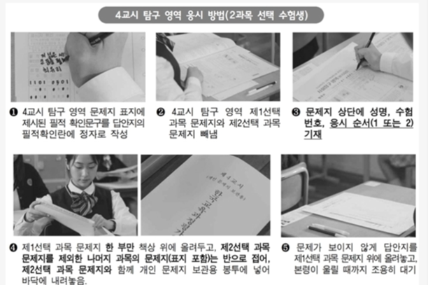 교육부는 일부 수험생이 4교시 탐구 영역 응시 방법을 혼동하고 있다고 보고 특별히 강조해 안내하고 있다.