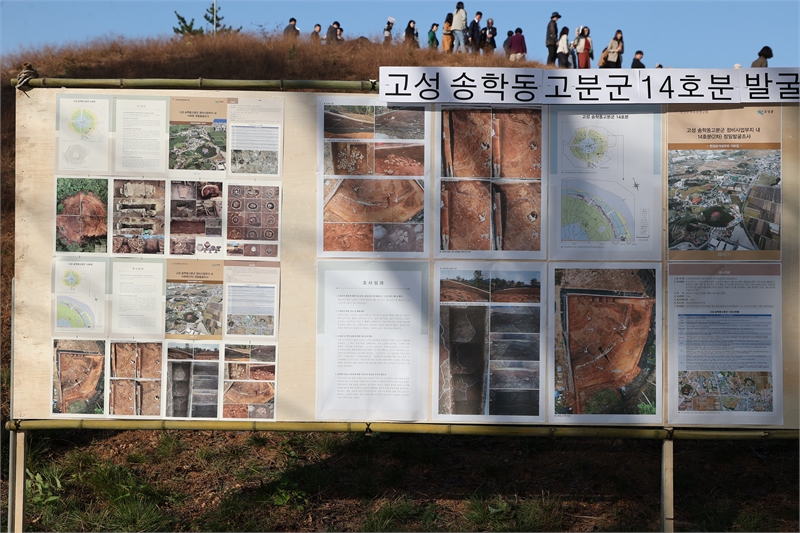 경남 고성군이 6일 고성 송학동 고분군 14호분 발굴조사 현장을 공개했다.