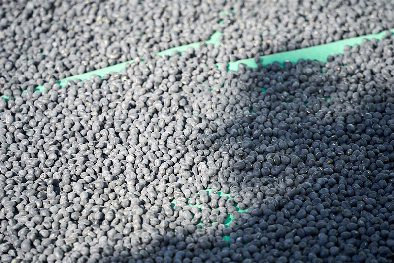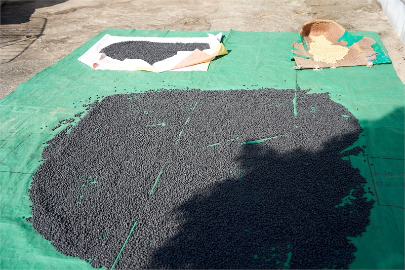 도리깨 타작으로 수확한 콩(서리태)을 말리고 있는 모습. 또 다른 종류의 콩, 노란 메주콩도 늘려 있다.