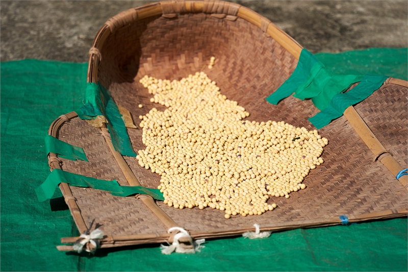 논둑에서 수확한 노란 콩을 키에서 말리고 있다. 노란색 콩은 된장 재료인 메주를 만드는데 사용돼 일명 메주콩이라고 한다. 이상 정창현 기자