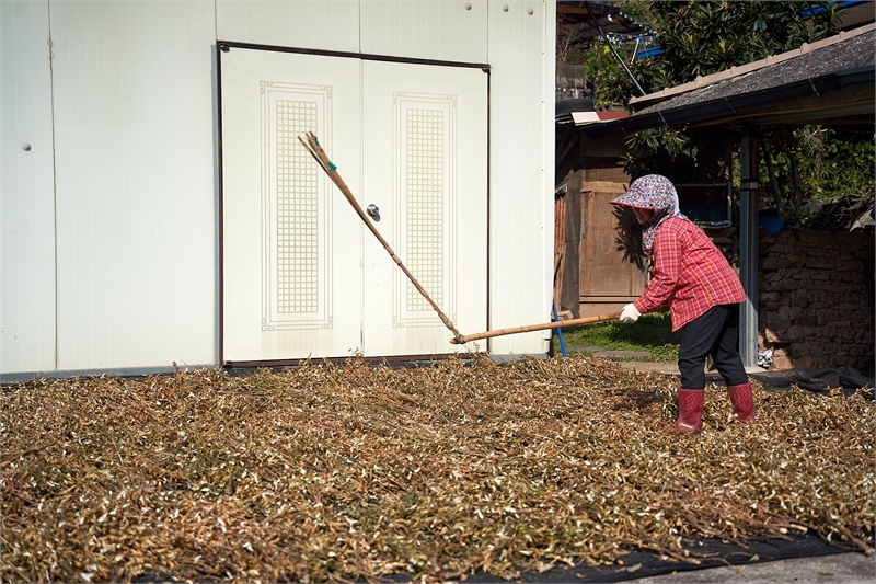 요즘 대부분의 농촌 일은 기계로 하지만 소규모 재배 농작물은 타작 등 옛 방식으로 합니다.