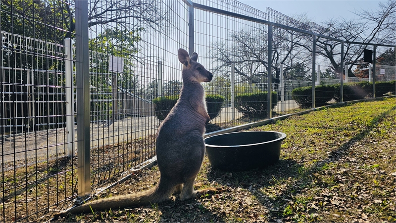 진주시에 있는 진양호동물원 새 가족이 된 왈라루 모습. 호주의 산악지대에 작은 무리로 서식한다.