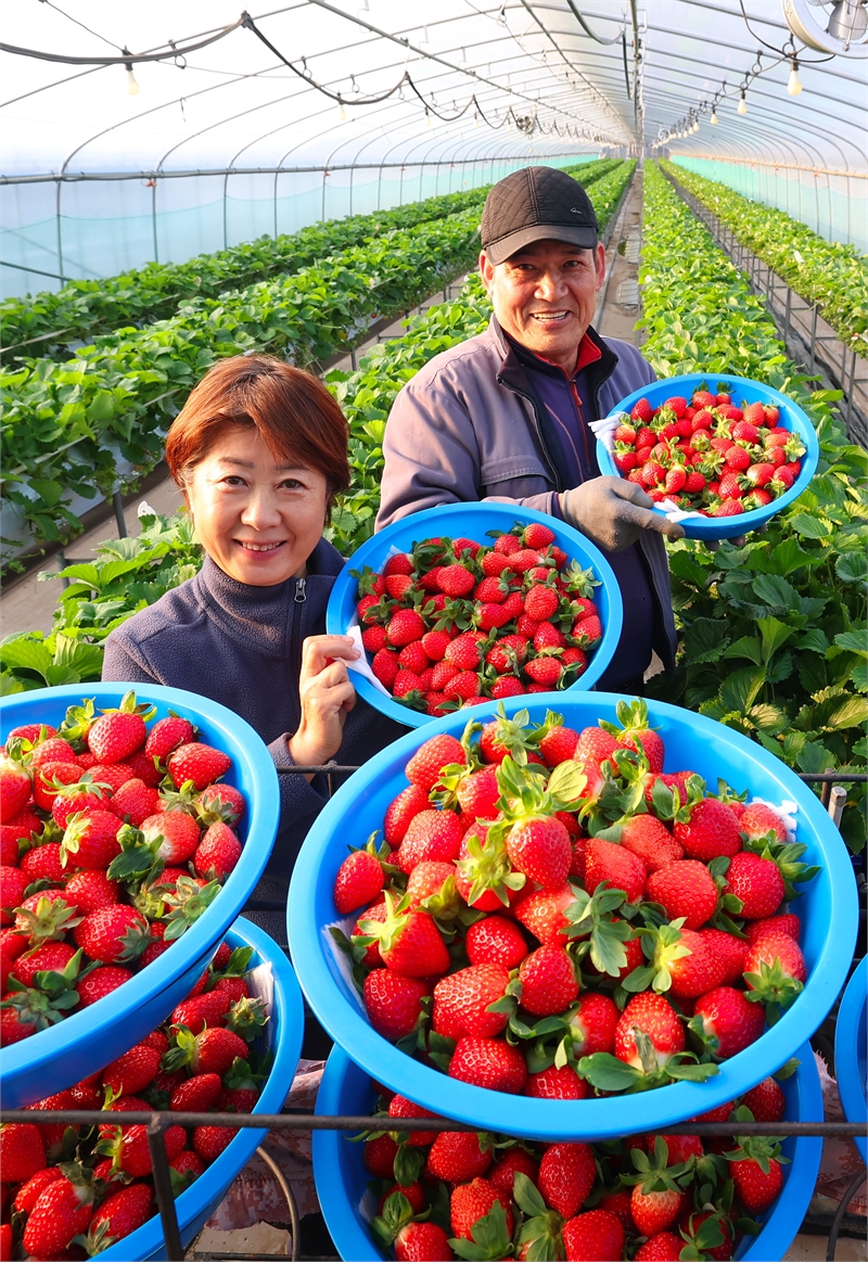 경남 함양군 지곡면 창촌마을 이감성 씨 부부가 18일 오전 딸기 하우스에서 새콤달콤한 ‘설향’ 딸기를 들어 보이고 있다. 이상 함양군 1 0 더경남뉴스 정창현 기자 gaia008@naver.com 정창현 기자의 기사 더보기 저작권자 ⓒ 더경남뉴스
