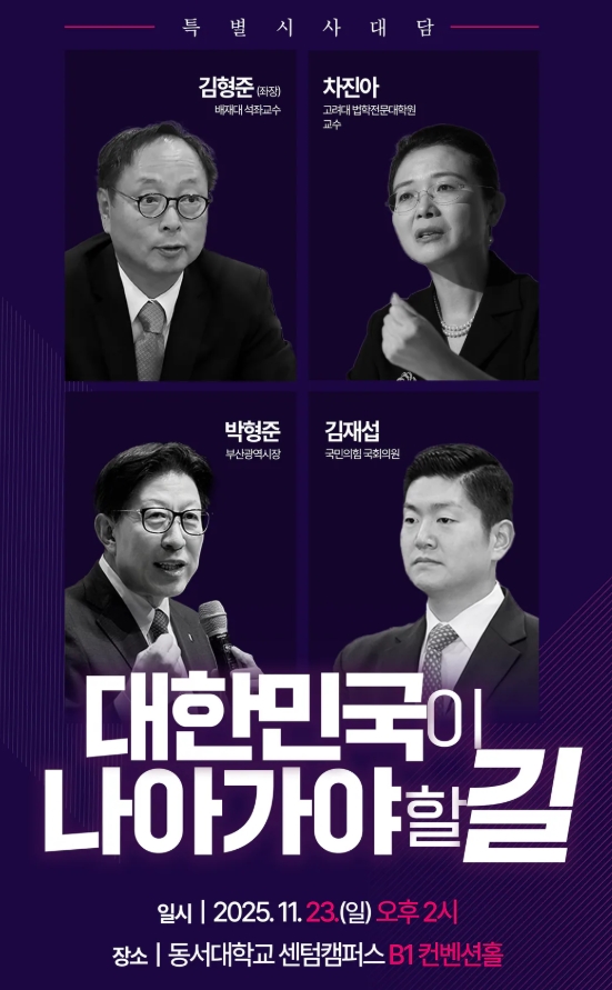 박 시장은 지난 23일 부산 해운대구 동서대 센텀캠퍼스에서 '대한민국이 나아가야 할 길'을 주제로 열린 시사 대담에서 "곧 계엄 1년인데 상대가 아무리 입법 독재를 하고 말도 안 되는 행동을 하더라도 자제하지 못해 정권을 3년 만에 헌납한 것은 잘못"이라고 지적했다.