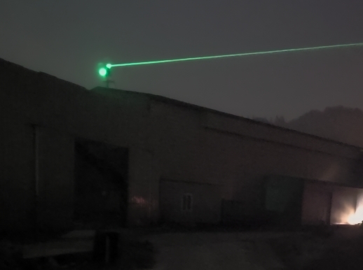 축사 지붕에 레이저를 이용한 조류 퇴치장비 작동 모습. 이상 경남도