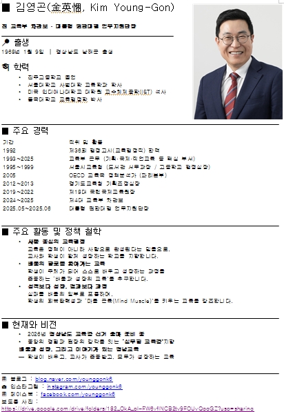 ■ 김영곤 경남도교육감 출마예정자의 주요 이력 및 활동, 비전