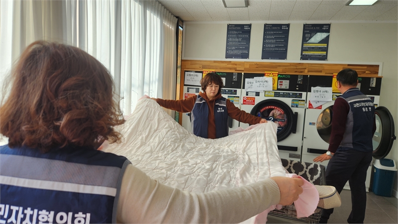주민자치회 자체예산으로 준비한 이번 사업은 19일과 21일 빨래감을 수거한 뒤 26일 세탁과 건조, 배달까지 원스톱으로 제공했다.