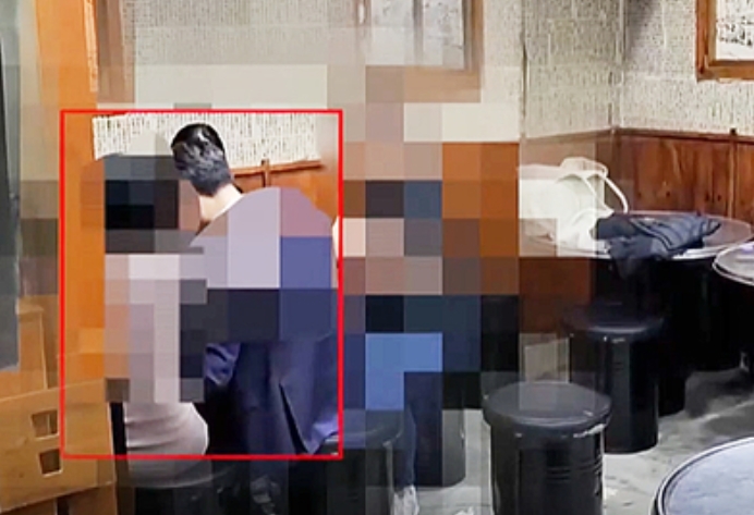 지난해 10월 서울 여의도의 한 음식점에서 장경태 더불어민주당 의원(오른쪽)이 피해자 A 씨의 바로 옆에 앉아 있다. 이때 A 씨의 남자 친구가 나타나 장 의원에게 "남의 여자 친구랑 뭐 하시냐고"라며 큰 목소리로 항의하는 모습이 동영상에 담겼다. TV조선