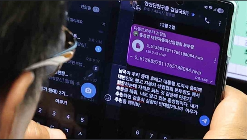 3일 뉴스핌 등에 따르면 내년도 예산안 표결이 진행 중이던 지난 2일 국회 본회의장에선 문진석 더불어민주당 의원이 김 비서관에게 텔레그램 메시지를 보내고 있는 모습이 뉴스팀 카메라에 잡혔다.