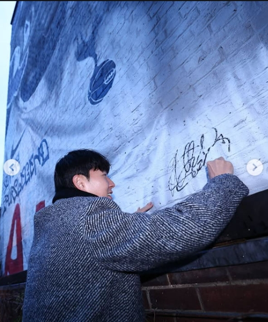 손흥민은 경기장 팬들을 만나기 전 토트넘 구단이 선물로 준비한 자신의 벽화를 찾았다.