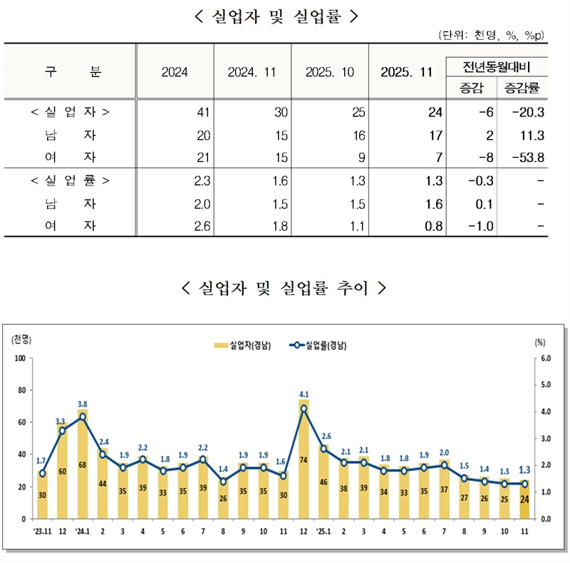 조현준 도 경제통상국장은 ”지속되는 고환율, 경제 침체 우려 속에서도 경남이 4개월 연속 역대 최고 고용률을 기록한 것은 주목할 만한 성과다“고 말했다.