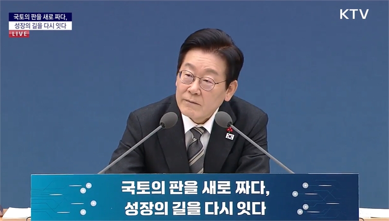 이재명 대통령이 12일 세종시 정부세종컨벤션센터에서 열린 국토교통부 업무보고에서 발언하고 있다. KTV