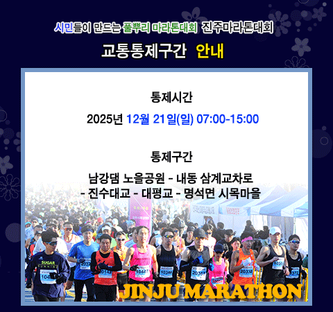 진주경찰서 교통관리계장은 “대회 당일 참가자와 시민 모두의 안전을 최우선으로 고려해 관계기관과 협력할 계획이고, 사전점검과 교통관리로 안전하고 성공적인 마라톤이 되도록 최선을 다하겠다”고 밝혔다.
